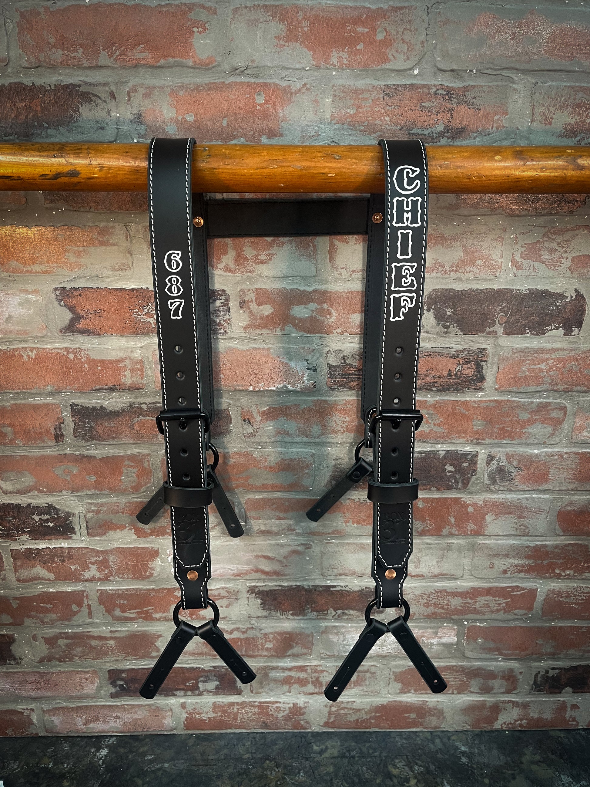 Our Leather H-Back suspenders are made to fit any style bunker gear. Our suspenders are designed to have a custom fit that doesn't need adjusted every time you put on your bunker pants like the worn out nylon suspenders. If we do not have your attachment method listed, please contact us. These suspenders are made from thick high-quality leather to withstand a career of use. Please see our Measurements Page to ensure proper measurements are given.